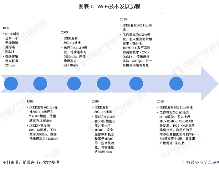 Wi-Fi作为一种允许电子设备连接到一个无线局域网的技术,已经经过了20多年的发展,目前技术革新至第6代,2019年WFA将“Wi-Fi+数字”的方式将802.11ax命名为Wi-Fi6。